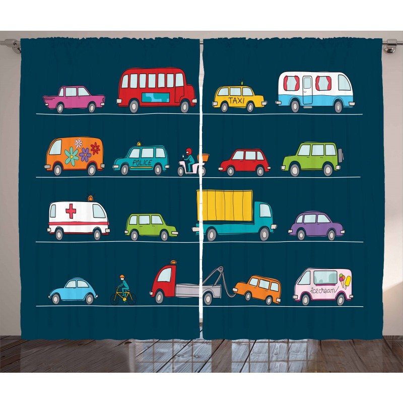 Детски пердета комплект - КОЛИ И КАМИОНИ
