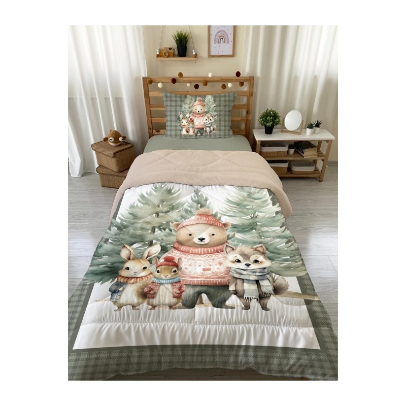 Детски плюшен спален комплект Cute Animals зелен