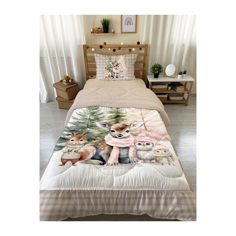 Състои се от 1 плюшена завивка с размери 160 см x 220 см, чаршаф с ластик (според вашия размер),