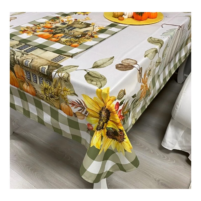 Покривките за маса са изработени от качествен плат в състава на който има памук и полиестер. Багрени са с безвредни бои. Модерна 3D щампа. 100% клиентска удовлетвореност. Подходяща за маса за 6 човека