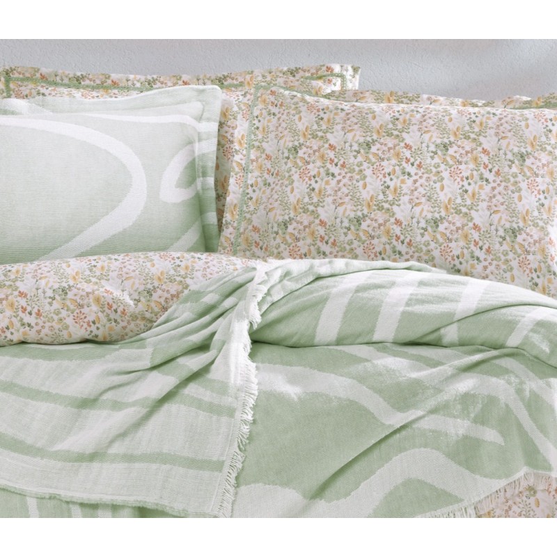 Летен двоен спален комплект от памук и одеяло - LENSY зелен