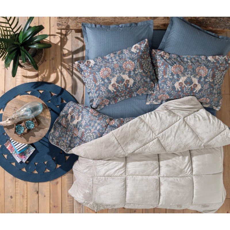 Комплект от завивка и чаршаф Madie - светло синьо и беж