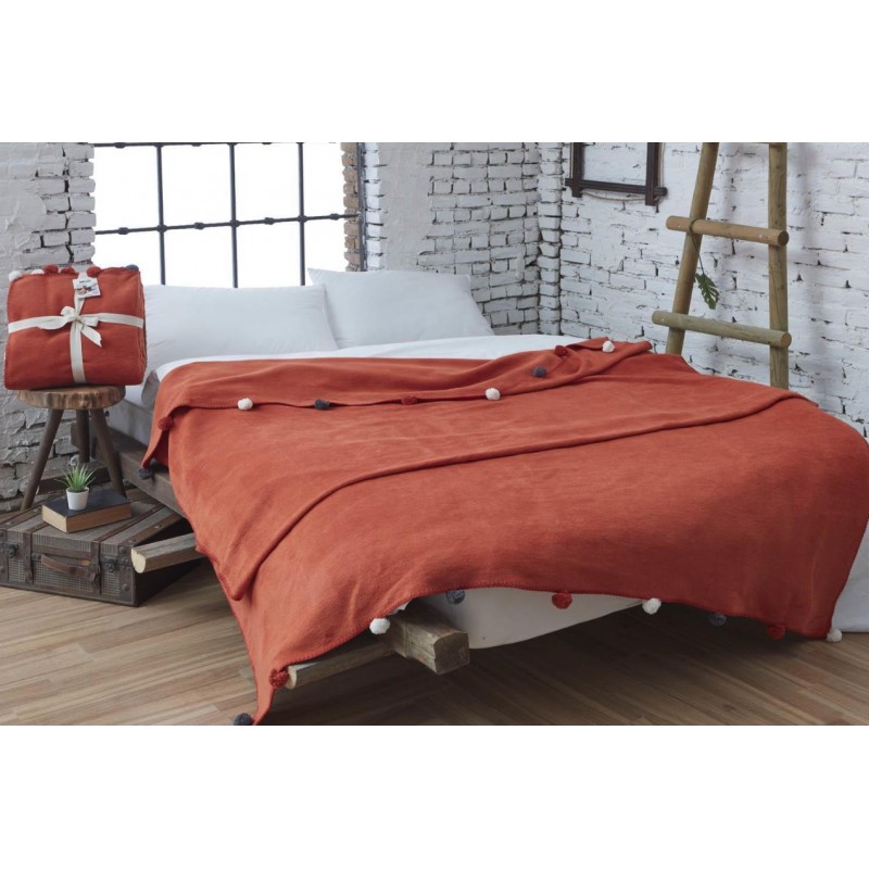Eсенно меко и топло памучно одеяло с помпони -200х220 см. теракота