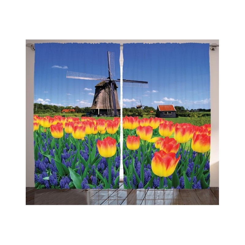 Комплектът съдържа ляво и дясно перде, ушити с перделик и кукички за окачване на релсов корниз . Снабдени са също и с процеп за нанизване директно върху тръбен корниз .