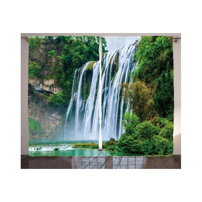 Комплектът съдържа ляво и дясно перде, ушити с перделик и кукички за окачване на релсов корниз . Снабдени са също и с процеп за нанизване директно върху тръбен корниз .