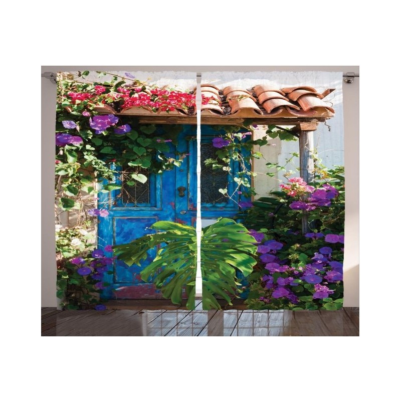 Комплектът съдържа ляво и дясно перде, ушити с перделик и кукички за окачване на релсов корниз . Снабдени са също и с процеп за нанизване директно върху тръбен корниз .