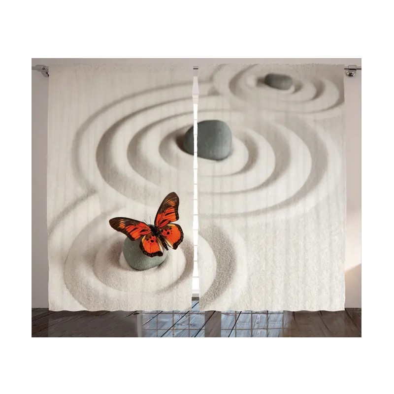 Комплектът съдържа ляво и дясно перде, ушити с перделик и кукички за окачване на релсов корниз . Снабдени са също и с процеп за нанизване директно върху тръбен корниз .