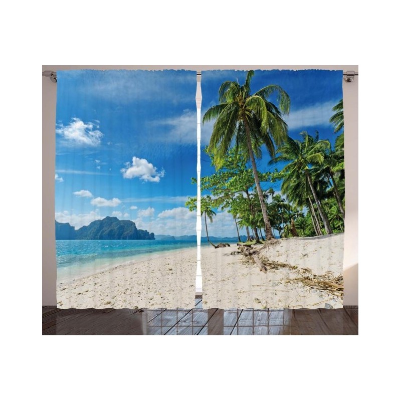 Комплектът съдържа ляво и дясно перде, ушити с перделик и кукички за окачване на релсов корниз . Снабдени са също и с процеп за нанизване директно върху тръбен корниз .