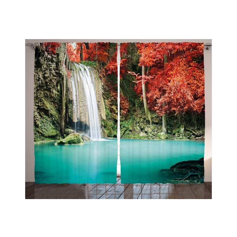 Комплектът съдържа ляво и дясно перде, ушити с перделик и кукички за окачване на релсов корниз . Снабдени са също и с процеп за нанизване директно върху тръбен корниз .