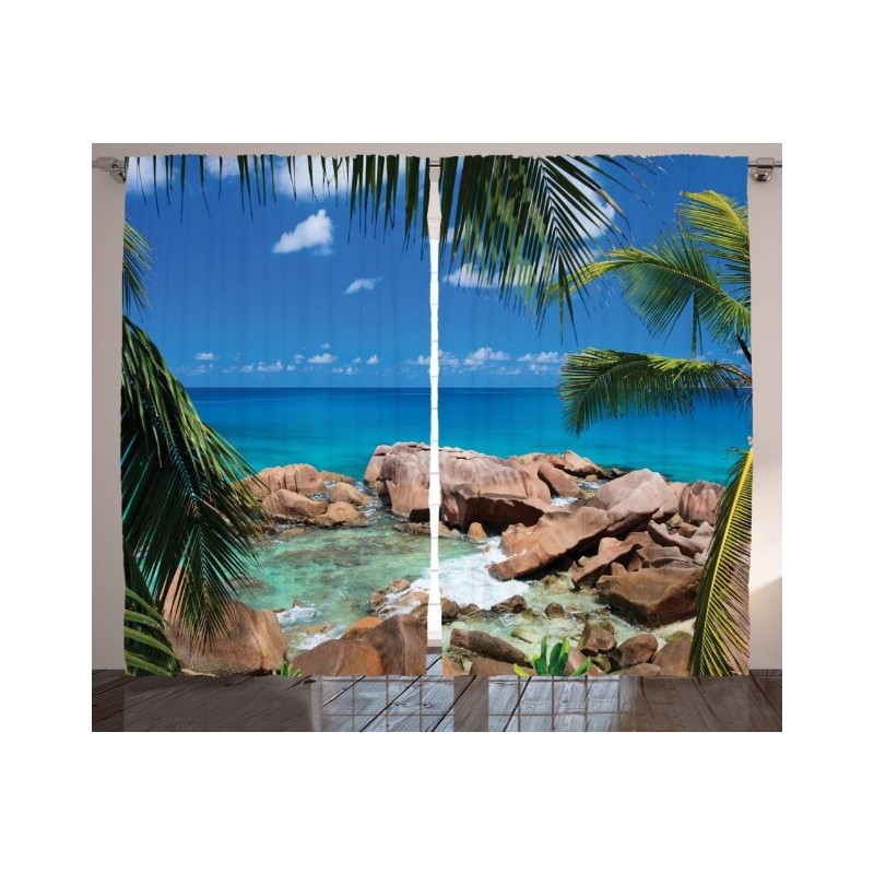 Комплектът съдържа ляво и дясно перде, ушити с перделик и кукички за окачване на релсов корниз . Снабдени са също и с процеп за нанизване директно върху тръбен корниз .