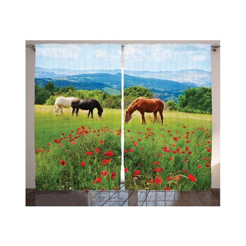 Комплектът съдържа ляво и дясно перде, ушити с перделик и кукички за окачване на релсов корниз . Снабдени са също и с процеп за нанизване директно върху тръбен корниз .