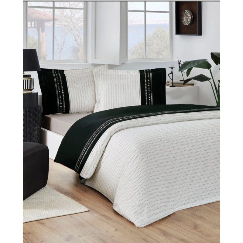Двоен стилен спален комплект от 100% памук черно и бяло Destaque