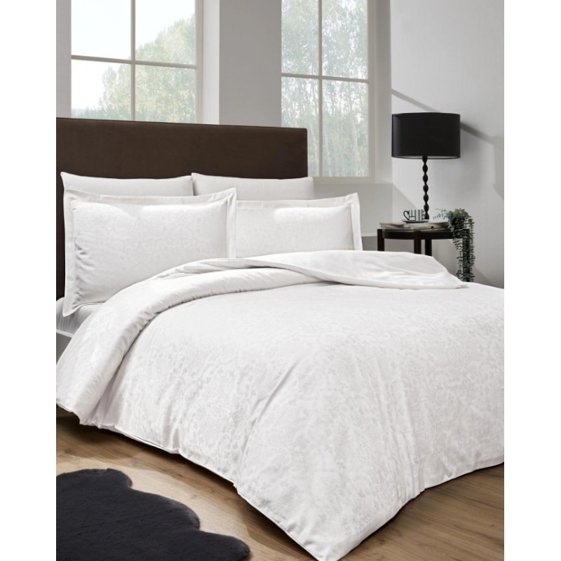 Двоен комплект от памучен сатен жакард Linden бял