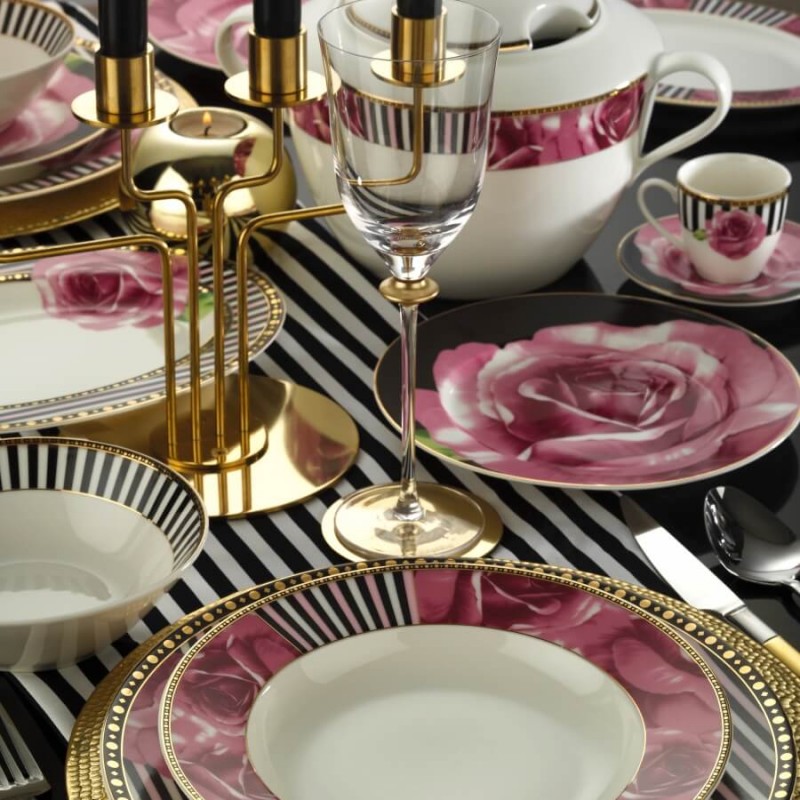 Сервизите за хранене изработени от най- фин порцелан, с политура, и пигменти от благородни метали, в съвременен дизайн и умело съчетание на цветовете. Създайте уют и изисканост на вашата трапеза. Сервизите за хранене се съчетават лесно с красиви прибори за хранене, текстилни покривки и аксесоари за масата.