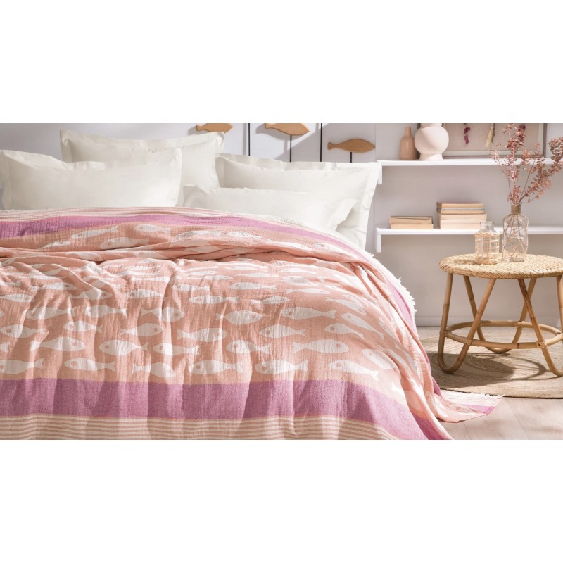 Муселинено покривало за легло, пике 230х240 см. оранж