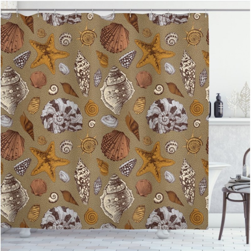 Завеса за баня 3D модел МОРСКИ ДАРОВЕ кафяво